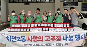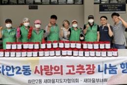 하안2동 새마을지도자협의회(회장 김광수)와 부녀회(회장 김점희)는 지난 27일 하안2동 행정복지센터 앞 주차장에서 ‘2025년 사랑의 고추장 나눔 행사’를 열었다고 밝혔다.이날 행사는 하안2동 새마을협의회·부녀회 회원들이 이른 아침부터 모여 정성껏 담근 고추장을 관내 저소득 취약계층 50가구와 경로당 4개소에 전달하며, 지역사회에 따뜻한 마음을 전하는 시간으로 마련됐다.김광수 회장은 “매년 함께해 주시는 회원들에게 감사하고, 정성껏 담근 고추장을 이웃과 나눌 수 있어 뜻깊다”며 “앞으로도 지역사회에 온기를 전할 수 있는 나눔 활동에