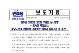 월, 2025/06/30- 00:00 에 admin 에 의해 제출됨 관련 개인/그룹 민주당 중앙당 정당 더불어민주당 지역 미특정 카테고리 보도자료 250630-민주당 제2회 추경안 심사방향.pdf공유 공유하기 닫기페이스북트위터카카오톡URL 복사 링크 https://theminjoo.kr/main/sub/news/view.php?sno=0&brd=188&post=1212599&search= Like 0 Dislike 0 댓글 달기 이름 제목 Comment 저장 Preview Leave this field blank