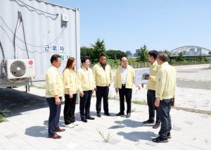 광명시의회(의장 이지석)가 여름철 집중호우와 안전사고 예방을 위해 주요 시설에 대한 현장 점검에 나섰다.시의회는 10일 안양천 물놀이장을 시작으로 철산배수펌프장, 11R 재개발 공사 현장 등을 차례대로 방문해 시설 운영 실태와 안전관리 상태를 점검했다.이번 점검은 시민 이용이 많은 시설과 재해 취약지역의 위험 요소를 사전에 점검하기 위한 조치이다.특히, 시의회는 물놀이장의 수질과 안전요원 배치, 배수펌프장 작동 상태, 공사장 토사 유출 방지 및 배수 대책 등을 집중적으로 확인했다.이지석 의장은 “여름철은 우기와 폭염, 시민 활동 증
