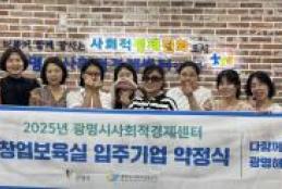 광명시(시장 박승원)는 지난 22일 사회적경제센터 배움실에서 창업보육실 2차 수시모집으로 최종 선정된 4개 입주기업과 약정식을 진행했다.이번 수시모집은 기존 계획보다 더 많은 사회적경제기업을 발굴하고 육성하기 위해 추진됐다.광명시는 예비 및 초기 창업기업에게 안정적인 사무공간을 제공하고자 7월 중 심사를 거쳐 ▲클린브릿지 ▲㈜캐롯 ▲㈜에코브이알 ▲광명3동무지개마을관리사회적협동조합 등 4개 팀을 최종 선정했다.이들 기업은 자유석 형태의 창업보육실에 입주해 올 연말까지 활동한다.현재 광명시 사회적경제센터 창업보육실에는 총 34개 기업이