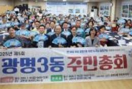 광명시 광명3동 주민자치회(회장 민병돈)는 지난 18일 광명3동 행정복지센터에서 ‘2025년 제5회 주민총회’를 성황리에 개최했다.이번 주민총회에는 박승원 광명시장을 대신해 황희민 자치행정국장이 참석했으며, 임오경 국회의원, 시·도의원, 그리고 광명3동 주민 200여 명이 함께했다.총회는 ▲지역 현안인 목감천 관리방안 토론회 ▲2025년 주민자치회 활동 및 추진사항 보고 ▲2024년 주민자치회 감사 보고 ▲2026년 주민자치회 자치계획 발표 및 투표 순으로 진행됐다.주민자치회에서는 2026년 마을사업으로 ‘무지개 골목길 정원 정비