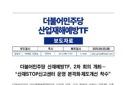 수, 2025/08/06- 00:00 에 admin 에 의해 제출됨 관련 개인/그룹 민주당 중앙당 정당 더불어민주당 지역 미특정 카테고리 보도자료 250805_더불어민주당_산재TF_2차회의_결과_보도자료.pdf공유 공유하기 닫기페이스북트위터카카오톡URL 복사 링크 https://theminjoo.kr/main/sub/news/view.php?sno=0&brd=188&post=1213041&search= Like 0 Dislike 0 1 view 댓글 달기 이름 제목 Comment 저장 Preview Leave this field blank
