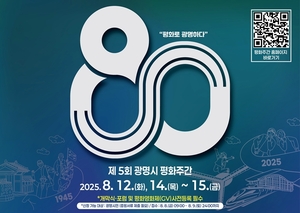 광명시가 광복 80주년을 맞아 역사적 의미를 되새기고 일상 속 평화의 가치를 돌아보는 ‘제5회 광명시 평화주간’ 행사를 진행한다.이번 평화주간 행사는 ‘광복 80주년과 일상 속 평화’를 주제로 오는 12일(화), 14일(목), 15일(금) 다양한 문화·시민 참여 프로그램이 진행된다.12일 저녁에는 평화주간의 시작을 알리는 ‘일상의 평화, 퇴근 음악회’를 시청 잔디광장에서 개최한다.오후 5시 30분부터 관내 사회적경제기업에서 플리마켓과 시민 체험 부스 10여 개를 운영하며, ‘드림뮤지컬25’의 뮤지컬 갈라쇼, 시민참여 토크쇼, 가수