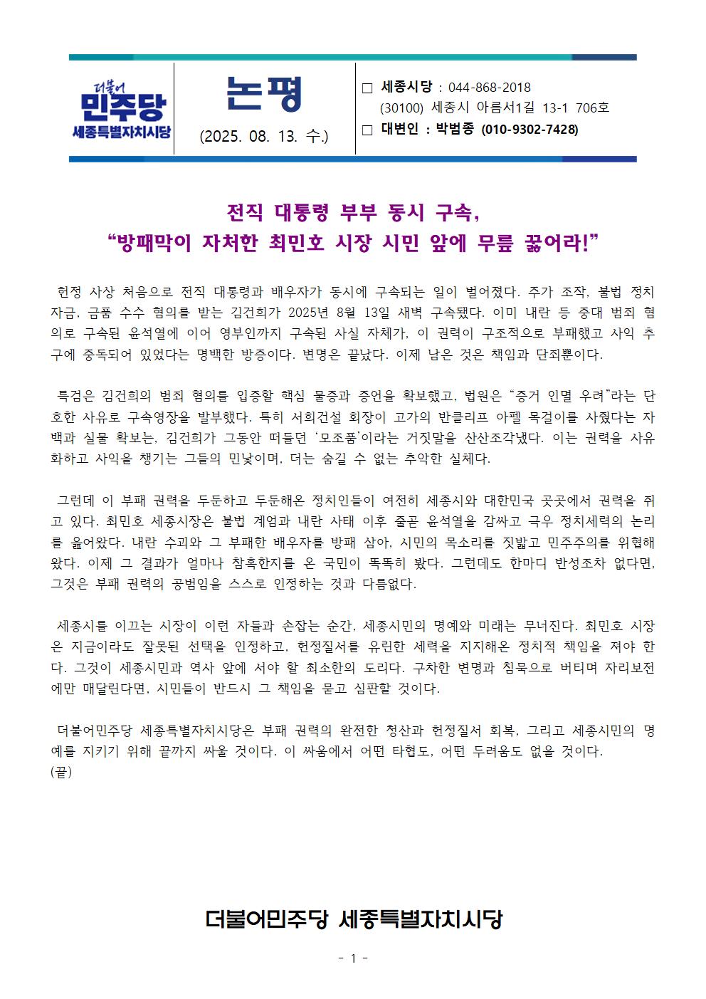 수, 2025/08/13- 00:00 에 admin 에 의해 제출됨 [0] 관련 개인/그룹 민주당 세종시당 정당 더불어민주당 지역 세종 카테고리 논평브리핑 링크 https://sejong.theminjoo.kr/party/sub/news/view.php?brd=54&post=978&board_id=briefing Like 0 Dislike 0 댓글 달기 이름 제목 Comment CAPTCHA 스펨 사용자 차단 질문 저장 Preview