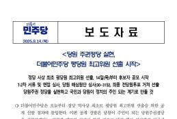 목, 2025/08/14- 00:00 에 admin 에 의해 제출됨 관련 개인/그룹 민주당 중앙당 정당 더불어민주당 지역 미특정 카테고리 보도자료 250813_보도자료_평당원_최고위원_선출_돌입_수정3.pdf공유 공유하기 닫기페이스북트위터카카오톡URL 복사 링크 https://theminjoo.kr/main/sub/news/view.php?sno=0&brd=188&post=1213135&search= Like 0 Dislike 0 2 views 댓글 달기 이름 제목 Comment 저장 Preview Leave this field blank