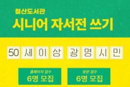 광명시(시장 박승원)는 오는 28일부터 시니어 세대의 활력 증진과 사회 참여를 돕기 위해 ‘자서전 쓰기 강좌’ 참가자를 모집한다.철산도서관은 2022년부터 시니어 세대가 독서와 글쓰기로 소통하고 공감하며 사회활동에 참여할 수 있도록 서평 쓰기, 수필 쓰기, 그림책 독서치료 등 다양한 프로그램을 운영해 왔다. 지난 3년간 약 130명의 시민이 참여하는 등 큰 호응을 얻었다.올해 하반기에는 시니어들이 자신의 삶을 돌아보고 기록으로 정리할 수 있도록 ‘자서전 쓰기 강좌’를 마련했다. 강좌는 9월 11일부터 12월 4일까지 매주 목요일,