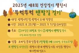 광명시(시장 박승원) 보건소는 시민들의 건강 증진과 걷기 문화 확산을 위해 25일부터 9월 7일까지 제8회 ‘뚜벅뚜벅 맨발길 걷기 챌린지’를 운영한다.이번 챌린지는 14일 동안 ‘10만 보 걷기’와 ‘맨발길 걷기 사진 인증’ 두 가지 임무를 모두 완료한 참여자 가운데 무작위 추첨으로 200명에게 모바일 문화상품권 1만 원권을 제공한다.‘뚜벅뚜벅 맨발길 걷기 챌린지’는 단순한 걷기 캠페인을 넘어 맨발 걷기를 통해 자연과 교감하며 건강을 되찾는 새로운 생활 습관을 제안한다.참가자는 광명시가 운영하는 18개소 이상의 맨발길 중 한 곳에서