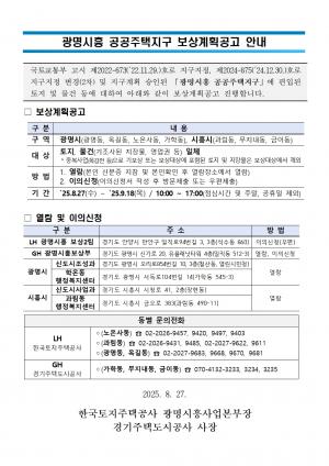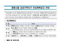 광명시흥 공공주택지구 보상계획이 공고되었다. 한국토지주택공사(LH)와 경기주택도시공사(GH)는 27일 보상계획 공고를 내고, 열람 및 이의신청을 진행한다. 광명·옥길·노온사·가학동(광명시), 과림·무지내·금이동(시흥시) 내에 있는 토지 및 물건에 대한 보상이며, 9월 19일 까지 열람이 진행된다. 열람은 소유자가 신분증을 지참하여 지정된 열람장소에서 하면 되며, 이의가 있을 경우 신청서를 작성하여 방문 제출 또는 우편으로 제출하면 된다. 자세한 사항은 광명시청 홈페이지에 있는 공고문을 확인하면 된다.
