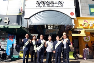 민족의 대명절 추석을 앞두고 광명시의회(의장 이지석)가 ‘광명전통시장’을 찾아 훈훈한 나눔을 실천하며 민생 현장을 살폈다.시의회는 지난 18일 이지석 의장을 비롯, 김종오 부의장, 정지혜 운영위원장, 이재한 자치행정교육위원장, 설진서 복지문화건설위원장 등이 참석한 가운데 ‘광명전통시장’에서 물가체험 및 장보기 행사를 진행했다.시의원들은 제수용품과 농축수산물 가격을 직접 확인하는 한편 미리 준비한 온누리상품권으로 장을 보며 시장 상인들을 격려했다. 앞서 시의원들은 상인들과 현장 간담회를 열고 경기침체와 온라인 유통 확산으로 인한 매출