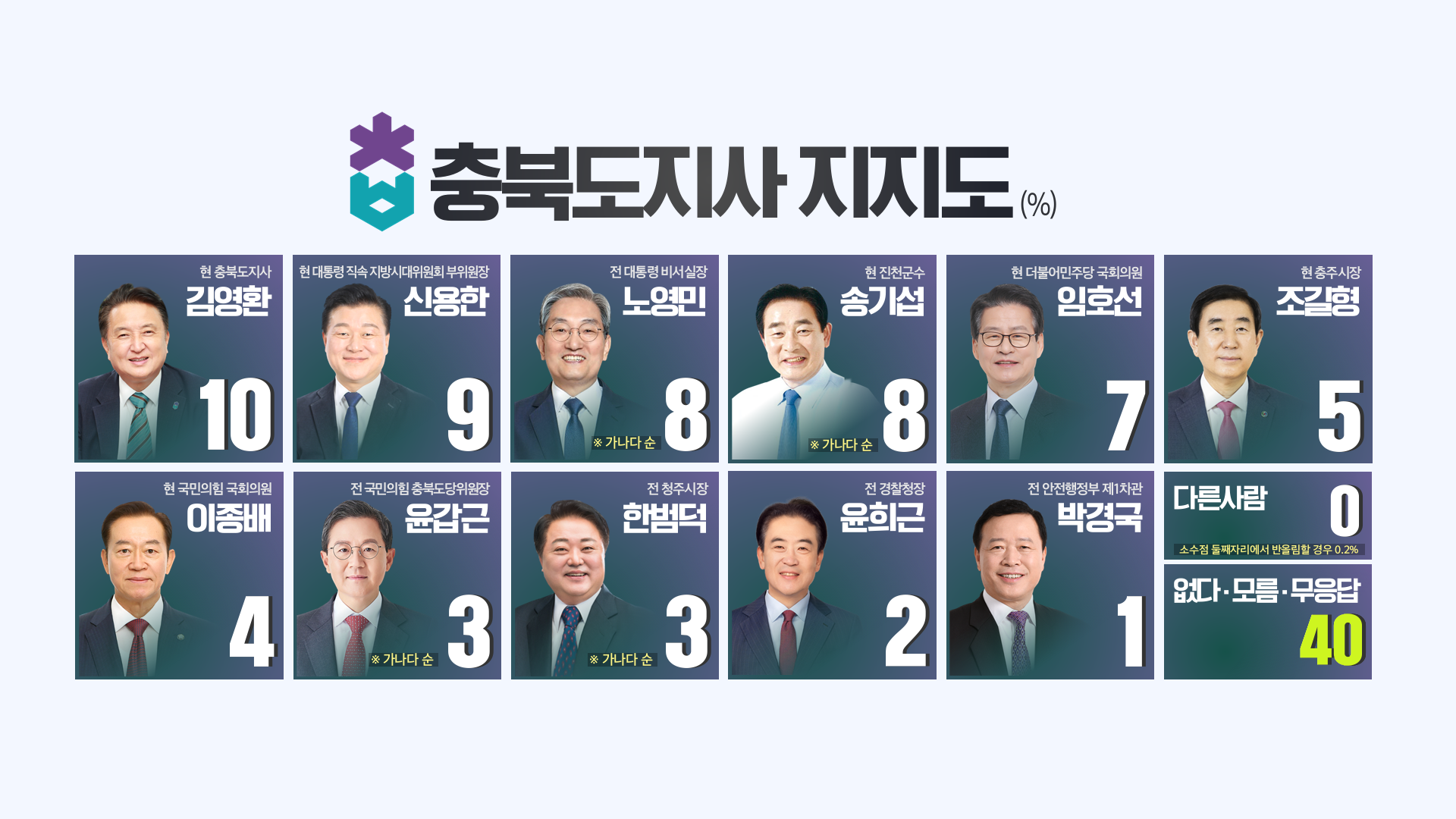 월, 2026/01/19- 20:09 에 admin 에 의해 제출됨 지역 충북 ■ KBS 청주방송총국, 지방선거 여론조사… 충북도지사 '현직 vs 민주당 후보군' 접전 제7회 전국동시지방... 링크 https://news.kbs.co.kr/news/pc/view/view.do?ncd=8463072 Tags 지방선거 Like 0 Dislike 0 1 view 댓글 달기 이름 제목 Comment 저장 Preview Leave this field blank