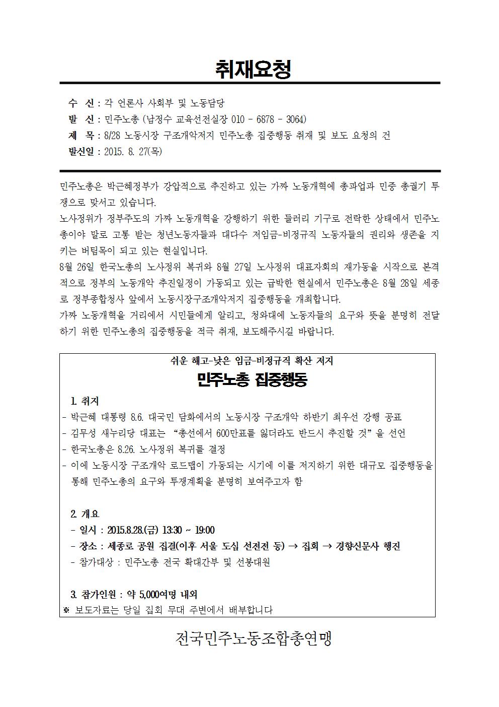 목, 2015/08/27- 16:23 에 익명 (미확인) 에 의해 제출됨 관련 개인/그룹 민주노총 성명.보도 지역 중구성동구 13:30 ~ 19:00 까지 세종로 공원 -> 집회 > 경향신문사로 행진 약 5,00 여명 참여 예상 링크 http://nodong.org/7039485 Tags 8.28 집중행동 노종시작개악 Like 0 Dislike 0 360 views 댓글 달기 이름 제목 Comment 저장 Preview Leave this field blank