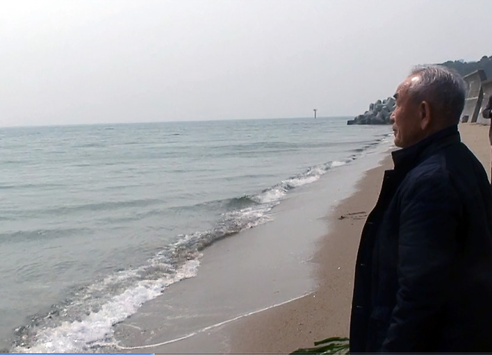 ▲ 아버지가 잠들어 있는 바다를 물끄러미 바라보는 전석호 할아버지 ⓒ 민족문제연구소