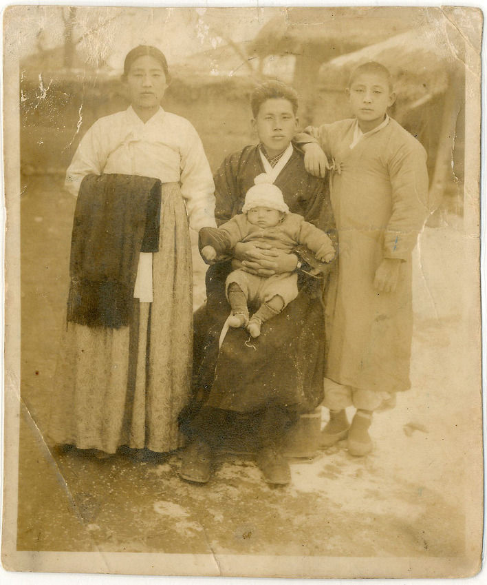 ▲ 왼쪽부터 어머니, 아버지, 외삼촌, 가운데 아이가 최낙훈. ⓒ민족문제연구소