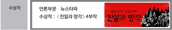 뉴스타파는 창립 이래 사회 문제에 대한 고발뿐만 아니라 현실문제의 근원으로서 역사적 맥락을 추적하는 작업에도 심혈을 기울여왔다. 특히 해방 70년을 맞은 올 한 해 뉴스타파는 역사 다큐멘터리와 탐사보도에서 질과 양 두 마리 토끼를 잡는 괄목할 만한 성과를 거두었다. 그 중에서도 심사위원회가 가장 주목한 결과물은 해방70년 특별기획으로 제작된 〈친일과 망각〉 4부작(2015년 8월)이었다. 뉴스타파가 수상자로 선정되는 데 가장 결정적인 영향을 미친 이 역작은 과학적 탐사보도의 신기원을 열었다는 평가를 받았다.