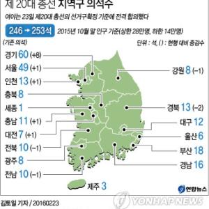 지역구 경기 8석, 서울·인천·대전·충남 1석씩 증가