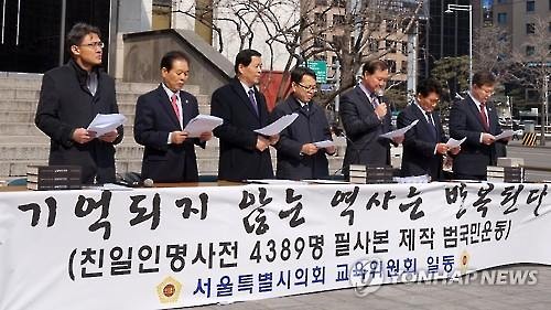 (서울=연합뉴스) 김용래 기자 = 보수성향 학부모단체가 '친일인명사전' 구입 예산을 의결한 서울시의회를 검찰에 고발키로 하는 등 친일인명사전 비치를 둘러싼 갈등이 깊어지고 있다.