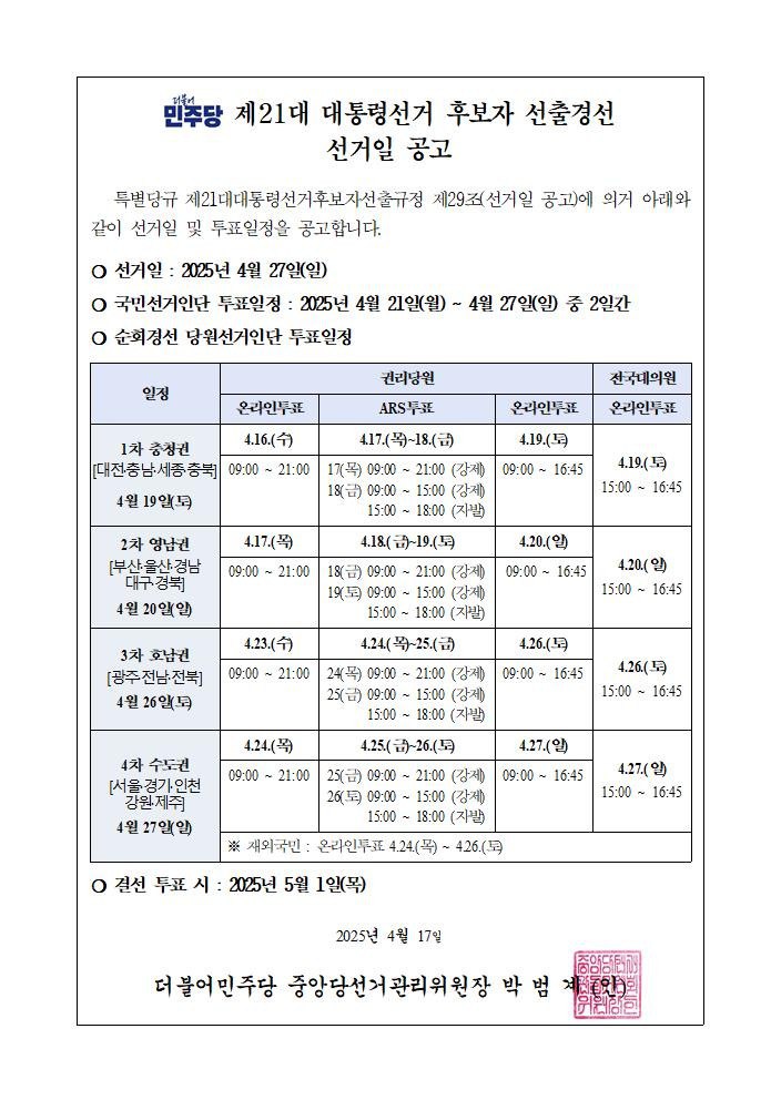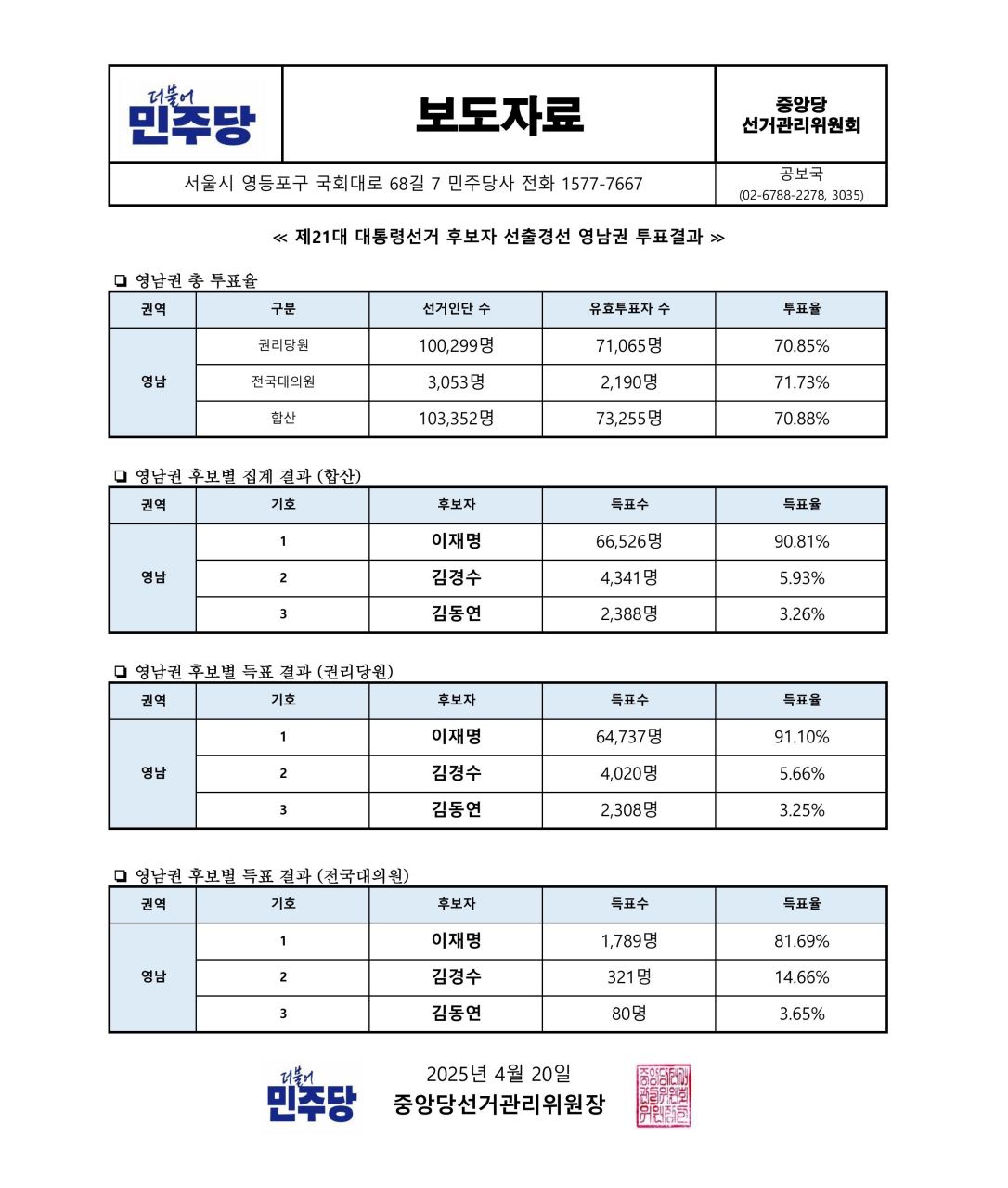더불어민주당 제21대 대통령선거 후보자 선출을 위한[영남권] 권리당원 자발적 ARS투표 안내 더불어민주당 제21대 대통령후보자 선출을 위한 권리당원 자발적…