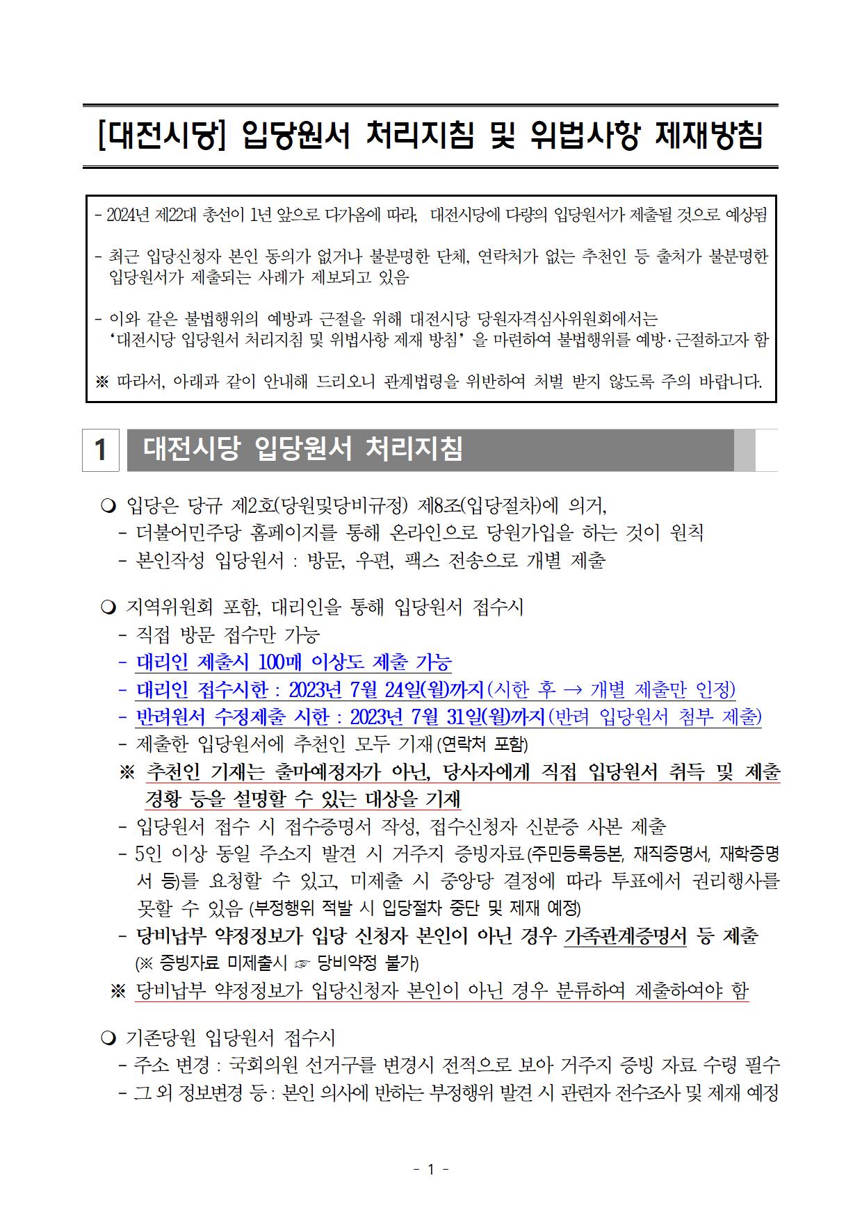 민주당 충남도당 - 아산시(갑) 지역위원회 대의원대회 소집 공고