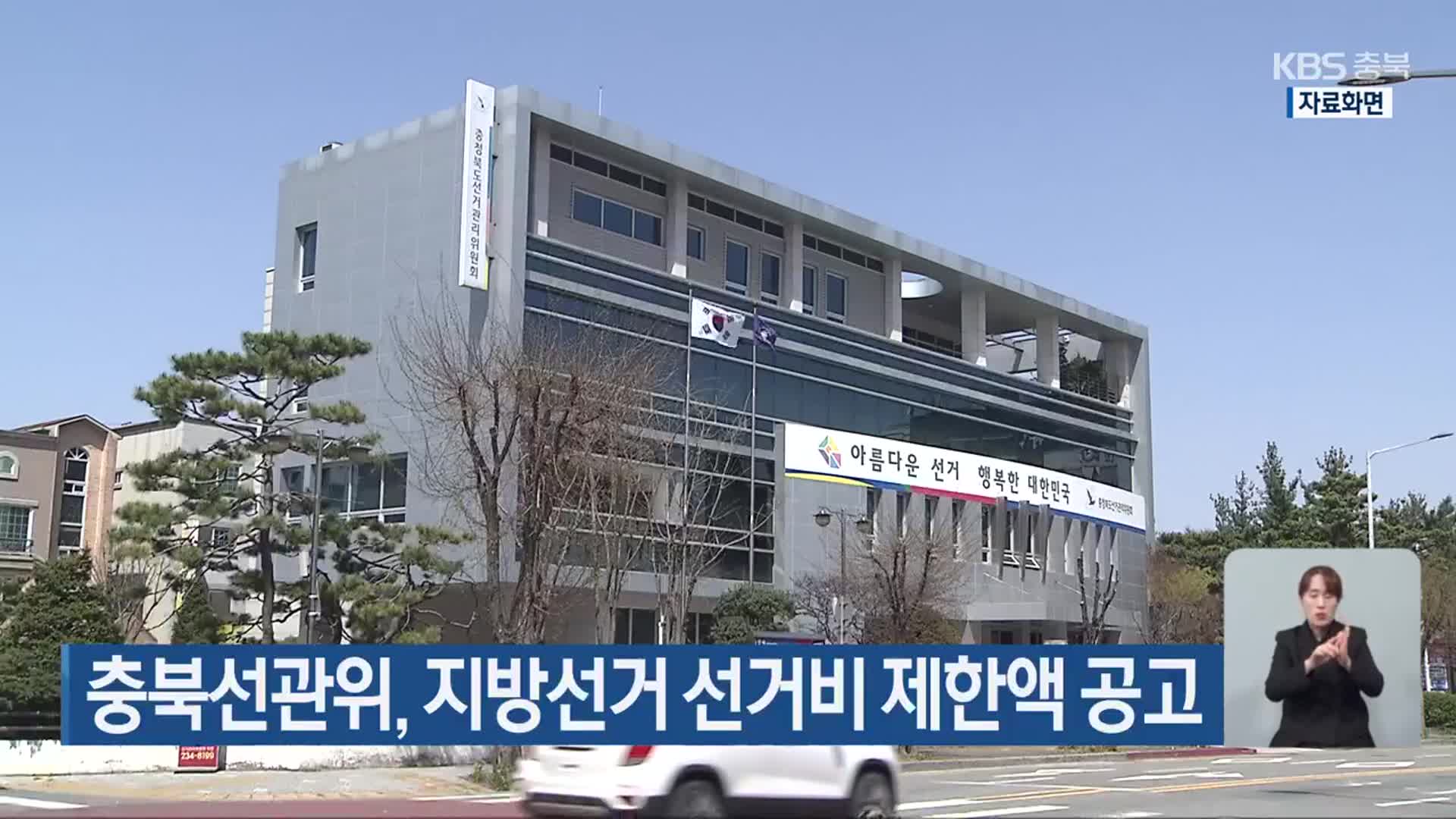 [KBS 청주]충청북도 선거관리위원회가 오는 6월 3일 치러지는 지방선거에서 후보자가 선거 운동에 쓸 수 있는 선거비 제한액을 공고했습니다. 충...