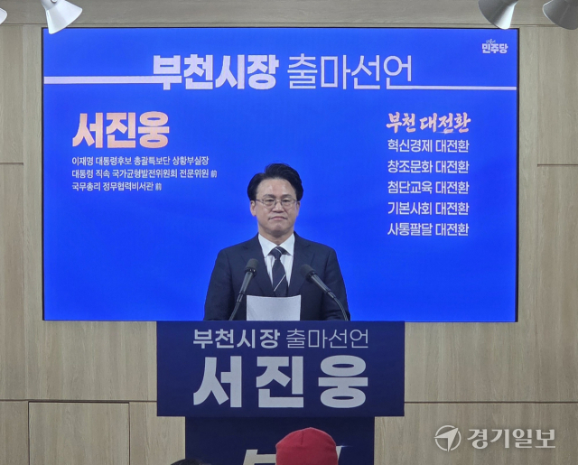 서진웅 전 국무총리 정무협력비서관이 21일 오전 부천시청 기자회견실에서 기자회견을 열고 오는 지방선거에서 부천시장 출마를 공식 선언했다. 서 전 비서관은 “부천은 지금 전진이…