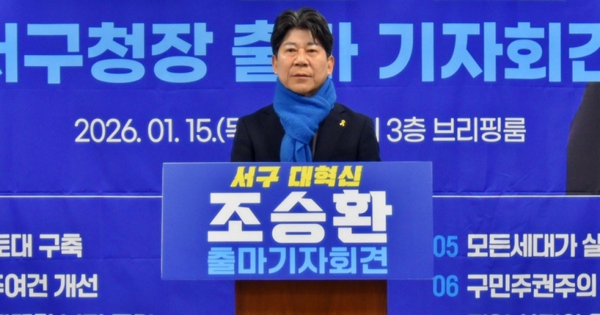 [김형호 기자] ▲ 광주광역시 서구청장 출마 선언하는 조승환 더불어민주당 정책위원회 부의장. 2026. 1. 15ⓒ 조승환측 제공조승환 더불어...