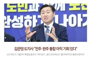 김관영 전북도지사가 남은 임기에 전주·완주 통합이 가능하다는 입장을 내놨다는 소식이 대대적으로 지역 언론에 전달돼 지난 연말 ‘물거품’, ‘무산...