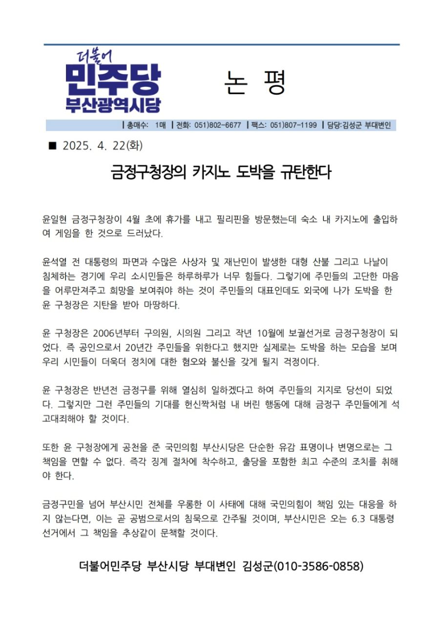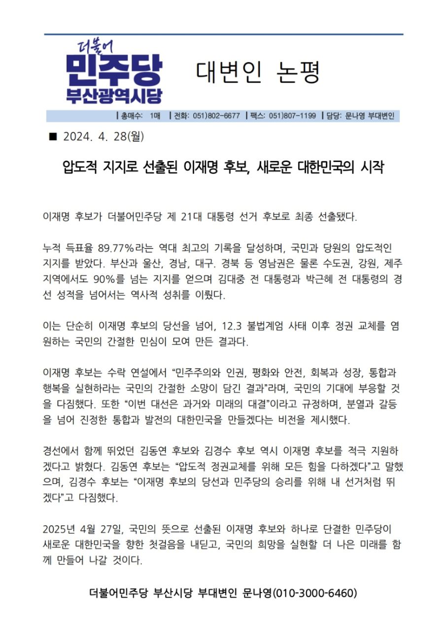 더불어민주당 울산광역시당(위원장 이선호)은 경북·경남 및 울산 울주군 일대에서 발생한 대형 산불로 피해를…