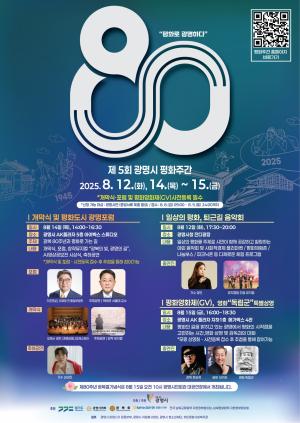 광명시(시장 박승원)가 광복 80주년을 맞아 역사적 의미를 되새기고 일상 속 평화의 가치를 돌아보는 ‘제5회 광명시 평화주간’ 행사를 진행한다.이번 평화주간 행사는 ‘광복…
