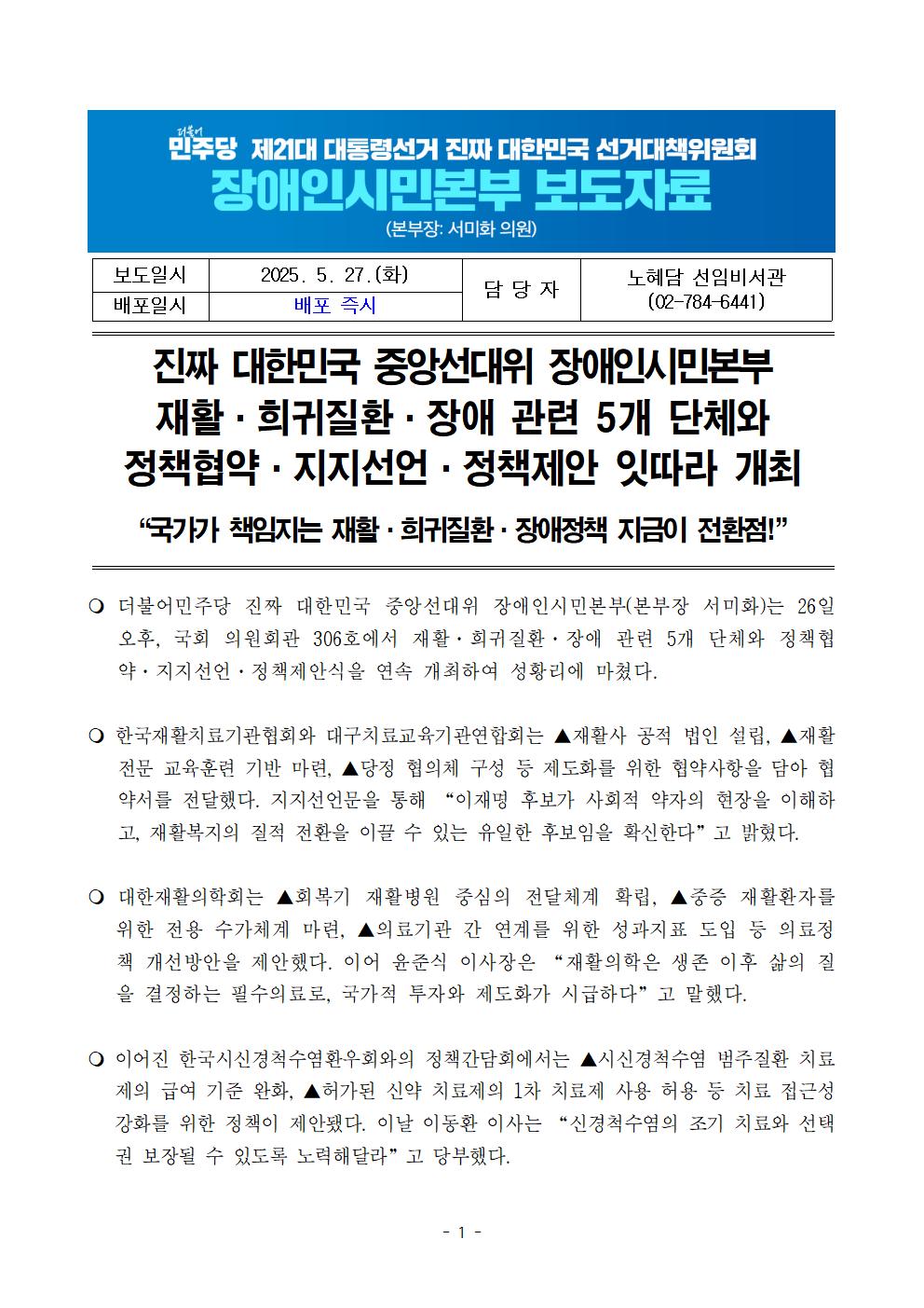 250527_장애인시민본부_보도자료_재활·희귀질환·장애_관련_5개_단체_정책협약·지지선언·정책제안.pdf공유
