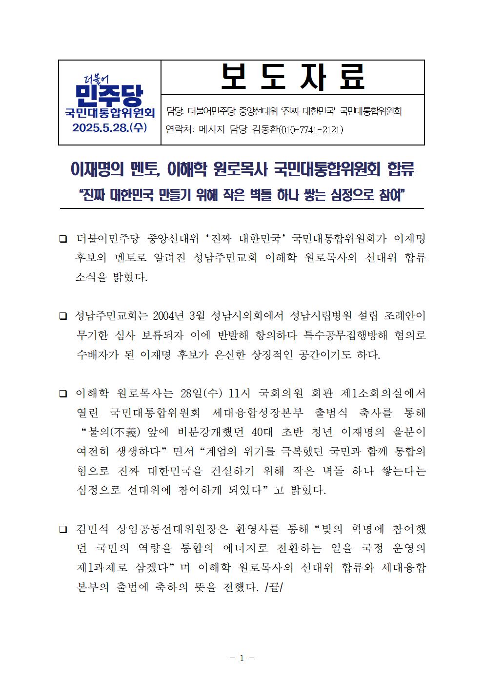 250528_보도자료_국민대통합위원회_이재명의_멘토_이해학_원로목사_선대위_합류.pdf공유
