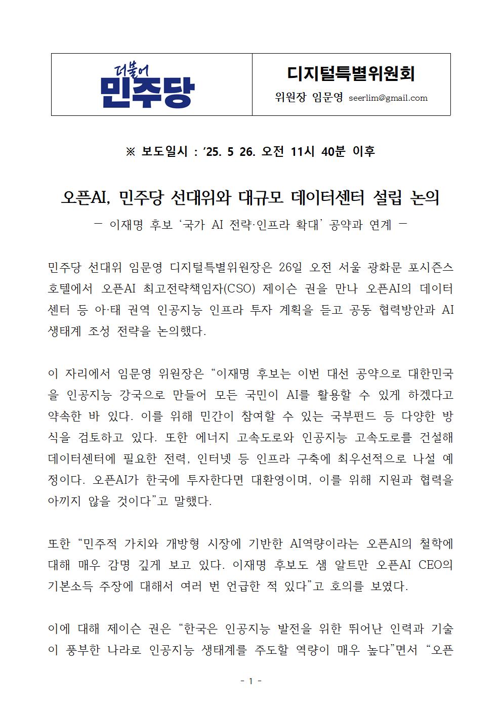 #_250526_디지털특별위_보도자료_오픈AI_민주당_선대위와_대규모_데이터센터_설립_논의.pdf공유