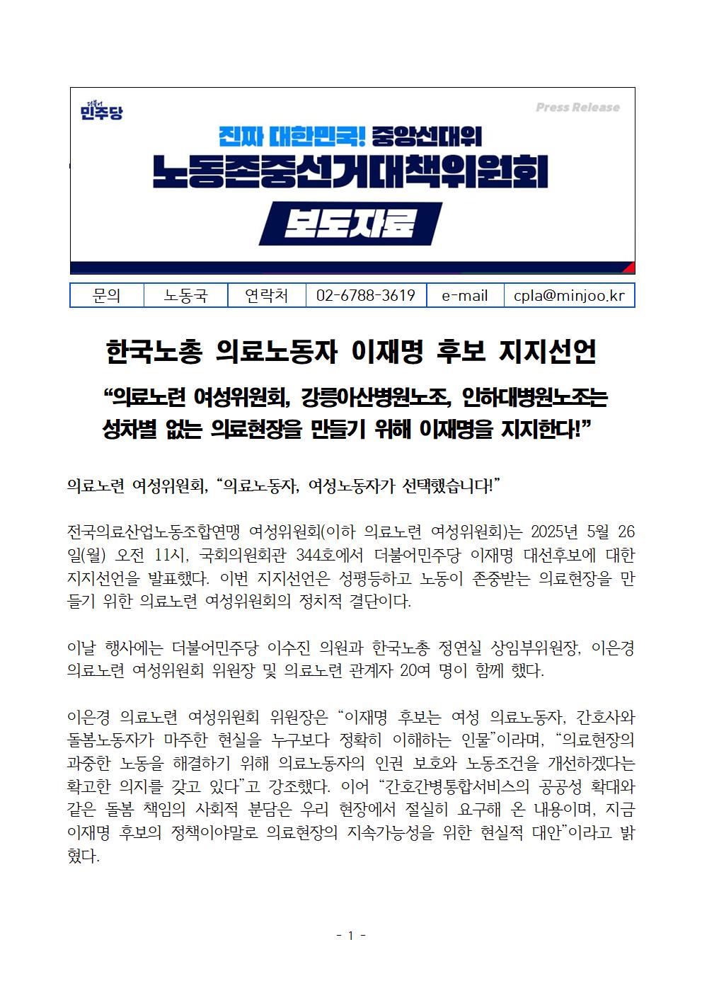 250526_노동존중선대위_보도자료_한국노총_산하_의료조직_지지선언.pdf공유