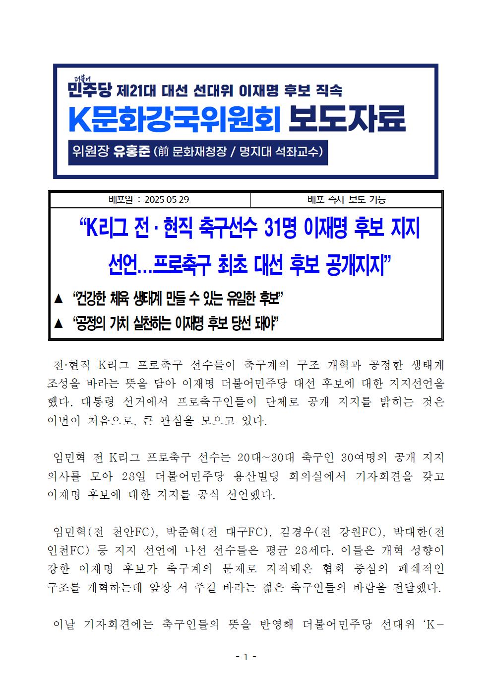 250529_K문화강국위원회_보도자료_K리그_전·현직_축구선수_31명_지지_선언.pdf공유