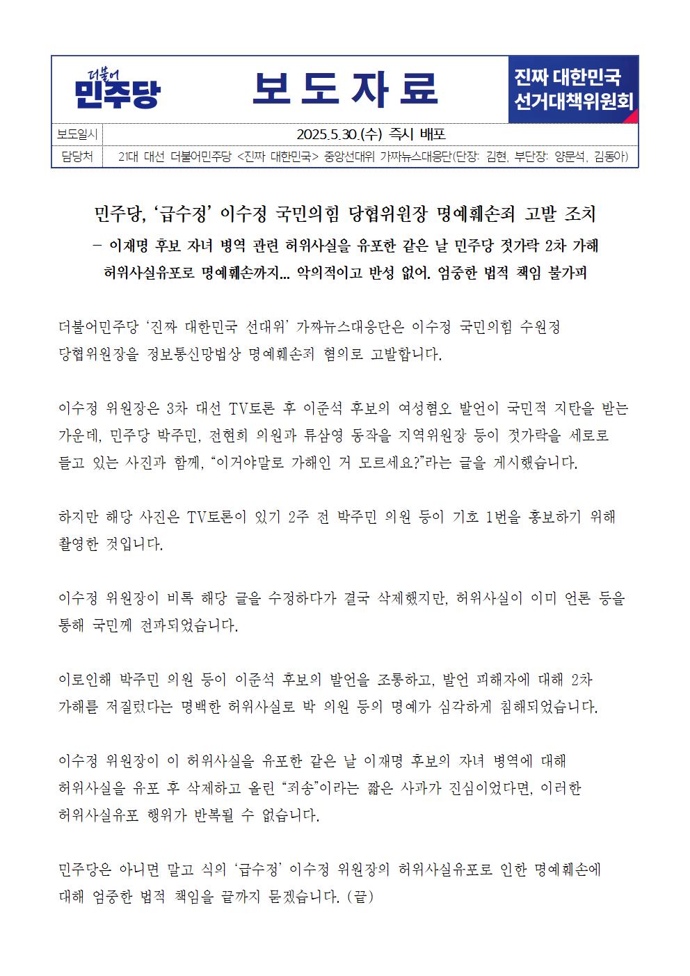 250530_보도자료_민주당_‘급수정’_이수정_국민의힘_당협위원장_명예훼손죄_고발_조치.pdf공유