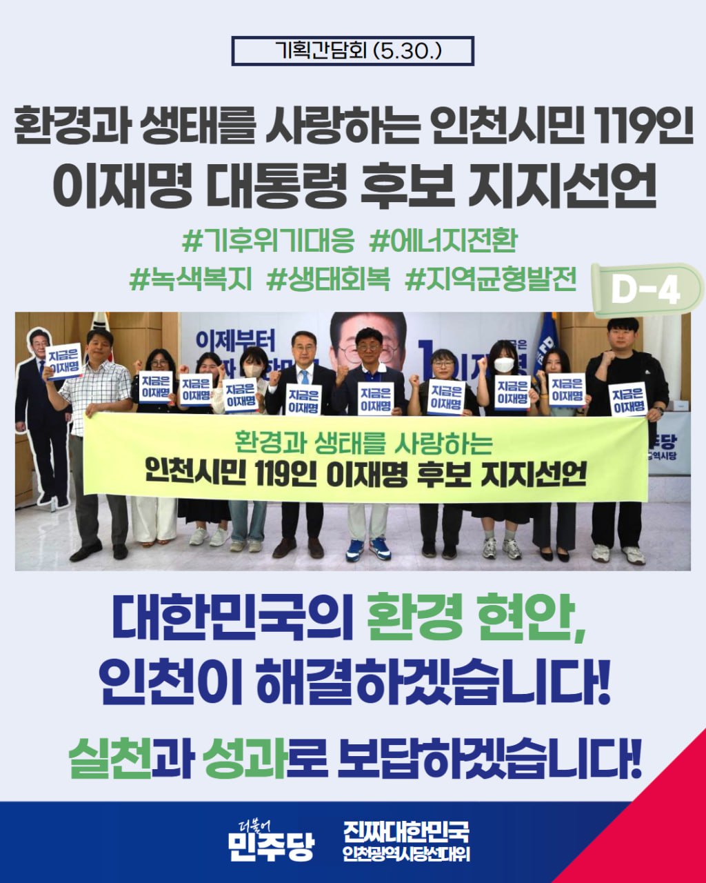 - “정의롭고 지속 가능한 미래를 위한 책임 있는 선택은 이재명 후보…