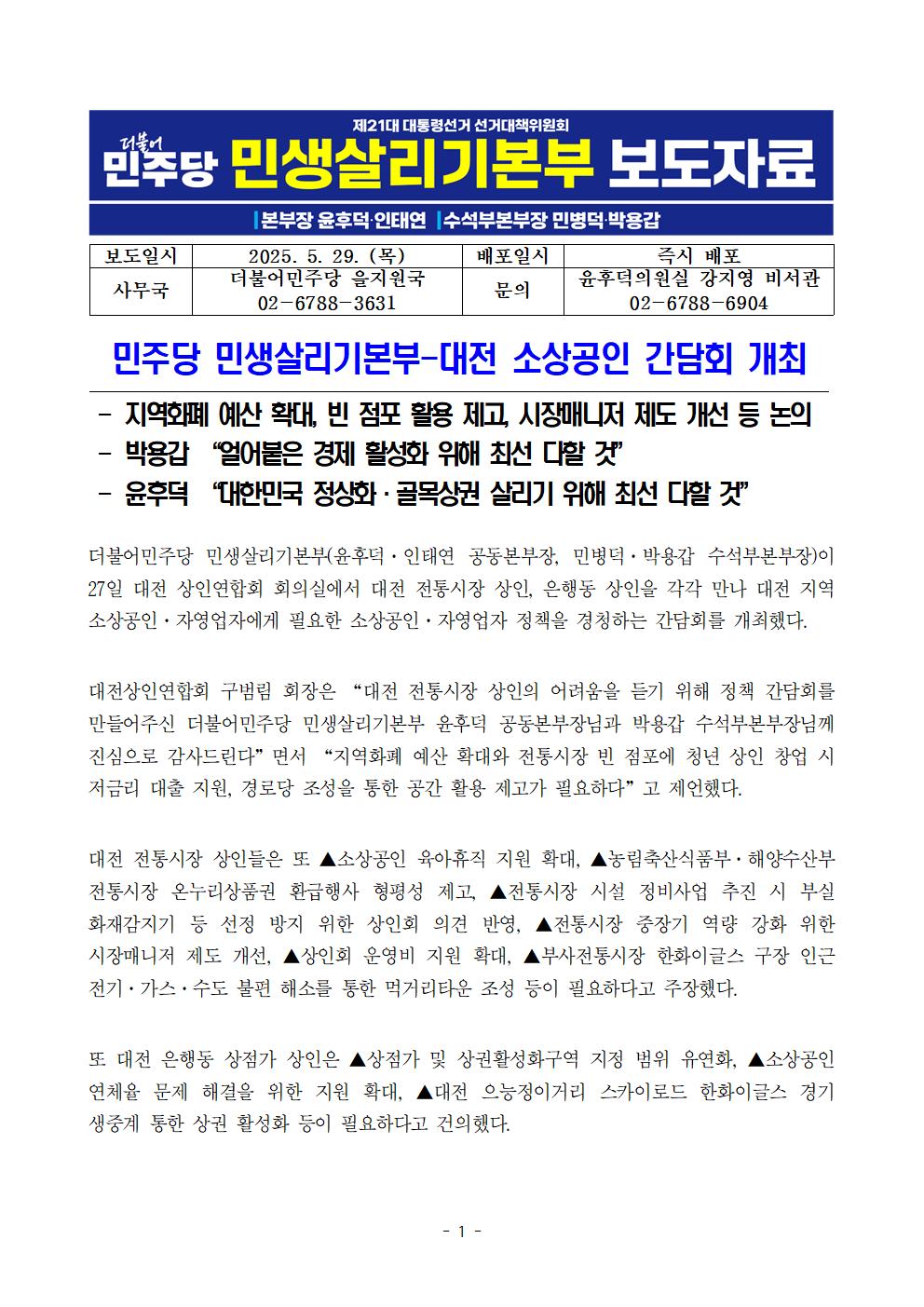 250529_민생살리기본부_보도자료_대전_소상공인_간담회_개최.pdf공유