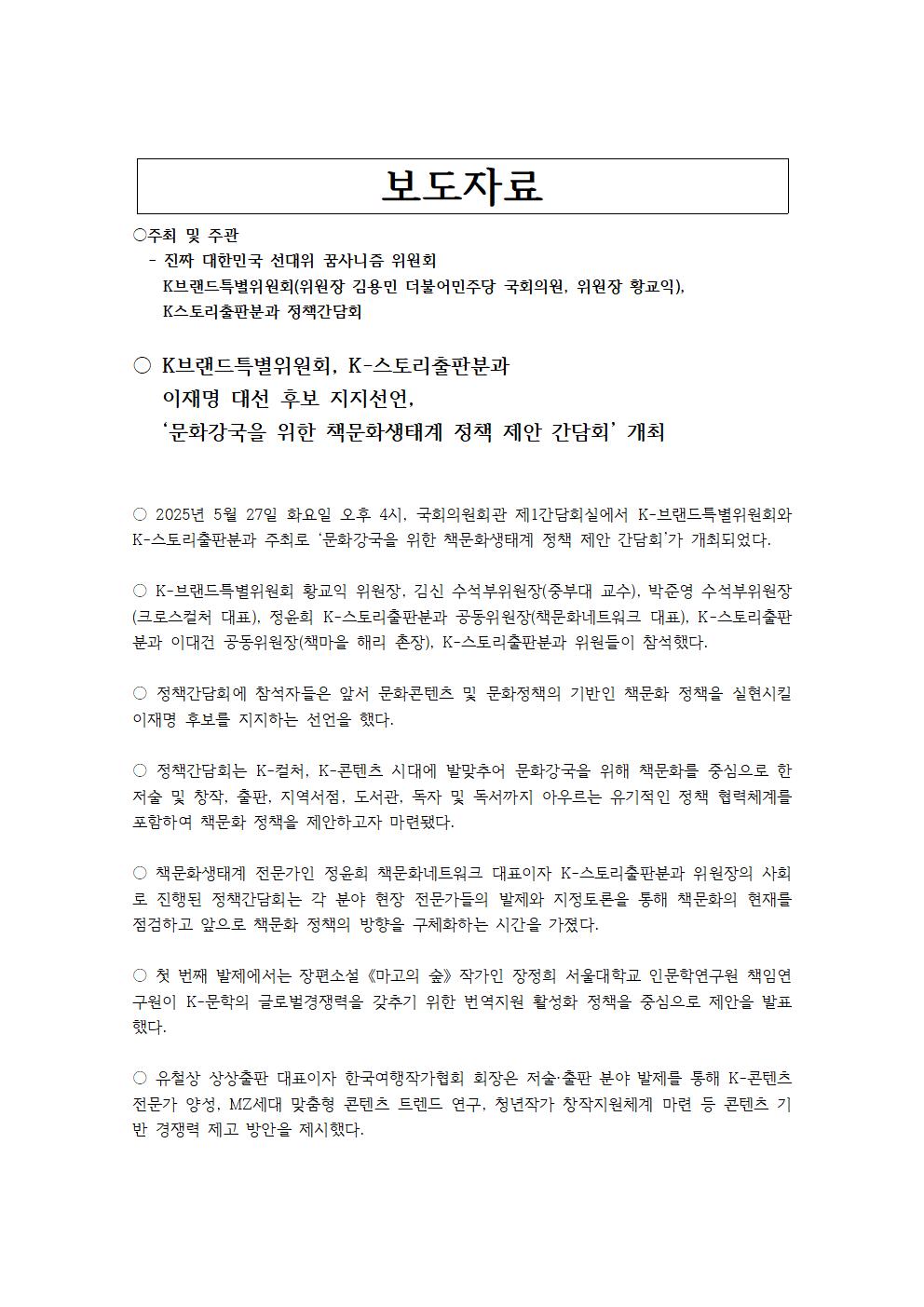 250529_K브랜드특별위원회_보도자료_문화강국을_위한_책문화생태계_정책_제안_간담회.pdf공유