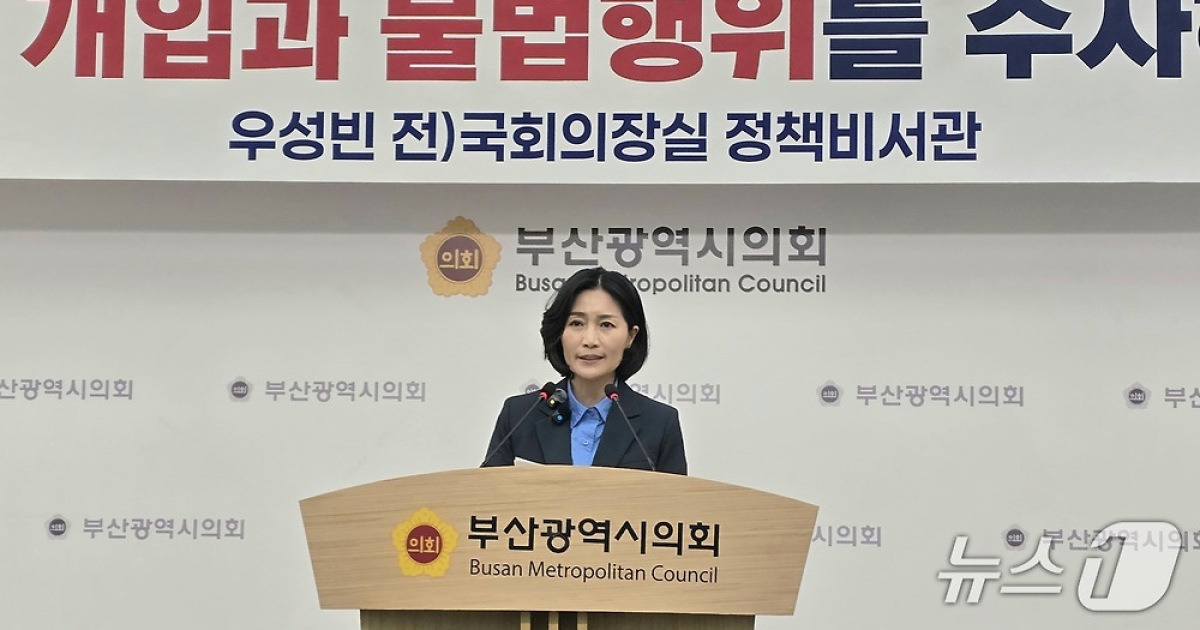 한눈에 보는 오늘 : 사회 - 뉴스 : 우성빈 전 비서관이 21일 부산시의회 브리핑룸에서 기자회견을 열고 '국힘 특정 종교단체'의 조직적 선거 ...