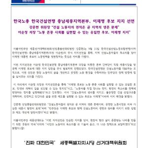 민주당 세종시당 - [보도자료]한국노총건설연맹 충남세종본부 더불어민주당 지지선언