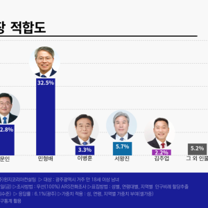 내년 6월 3일 치러지는 제9회 지방선거를 앞두고 드림투데이가 실시한 여론조사에서 민형배 국회의원이 광주시장 적합도 조사에 선두를 달리는 것으로...