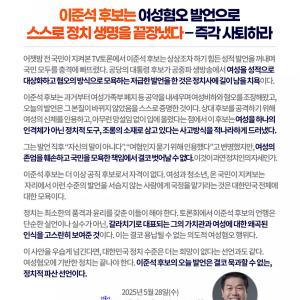 내란종식과 민주주의 회복, 경제 살리기와 외교만으로도 바쁘시고 이미 중요한 의제들이 넘쳐나는 것을 십분 이해하고 인지하고 있습니다.