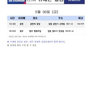 민주당 강원도당 진짜 대한민국 강원선대위 강풍유세단 31일(토) 강원 유세 일정새글
