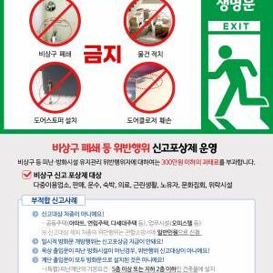 광명소방서(서장 이종충)는 비상구 폐쇄 등 피난·방화시설 유지관리 위반행위에 대해 시민의 자발적 신고를 활성화하기 위한 ‘신고포상제’를 강도 높게 운영하고 있다고 5일 밝혔다.…
