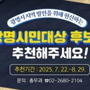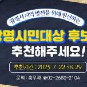 광명시는 오는 8월 29일까지 ‘제37회 광명시민대상’의 주인공을 찾기 위해 후보자를 추천받는다.은 지역사회 각 분야에서 근면·성실한 자세로 봉사하며 시 발전과 명예를 위해…