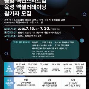 광명시(시장 박승원)가 지역 혁신 스타트업의 성장을 지원하고 창업 생태계 활성화를 위한 ‘혁신 스타트업 육성 액셀러레이팅 지원사업’을 본격 추진한다고 18일 밝혔다.이번 사업은…