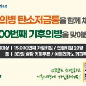 광명시(시장 박승원)가 1만 5천 번째 기후의병에게 3만 원 상당의 커피 상품권을 증정하는 이벤트를 실시한다고 12일 밝혔다.또한 1만 5천 번에 근접한 20명의 회원(1만…