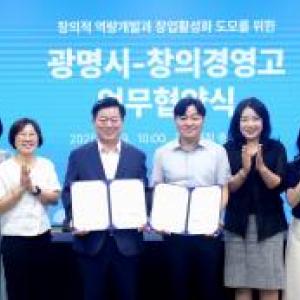 광명시(시장 박승원)와 창의경영고등학교(교장 최민산)가 미래 창업 인재 양성과 지역 창업 생태계 조성을 위한 협력의 물꼬를 텄다.양 기관은 9일 오전 시청 중회의실에서 ‘창의적…