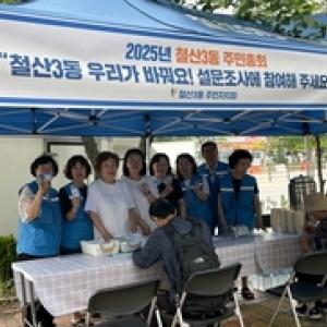철산3동 주민자치회(회장 장경열)는 지난 13일 철산역 NH농협은행 광명시지부 앞에서 2026년도 주민세마을사업 의제발굴을 위한 주민의견 설문조사를 진행했다고 밝혔다.이날…