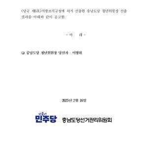 민주당 충남도당 - 더불어민주당 충남도당 청년위원장 당선자 공고