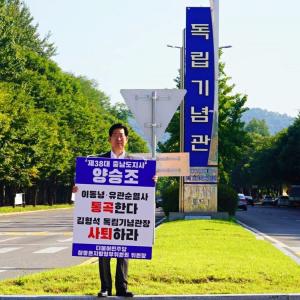 민주당 충남도당‘김형석 독립기념관장’임명철회 1인 시위 지속 이어가